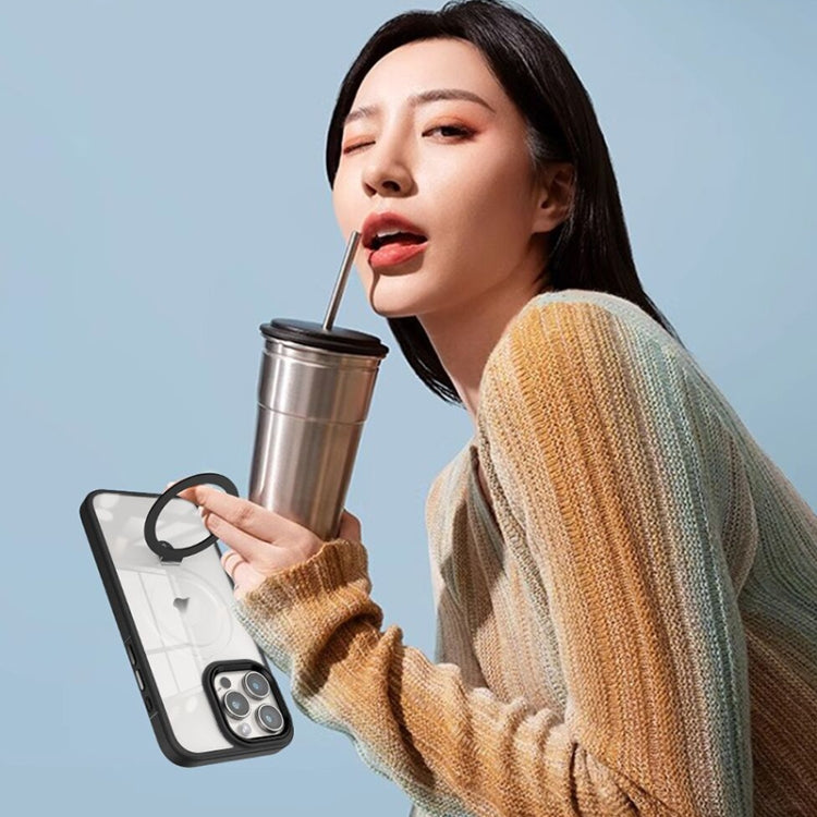 For iPhone 15 Pro Shield Armor MagSafe Holder Phone Case(Black)