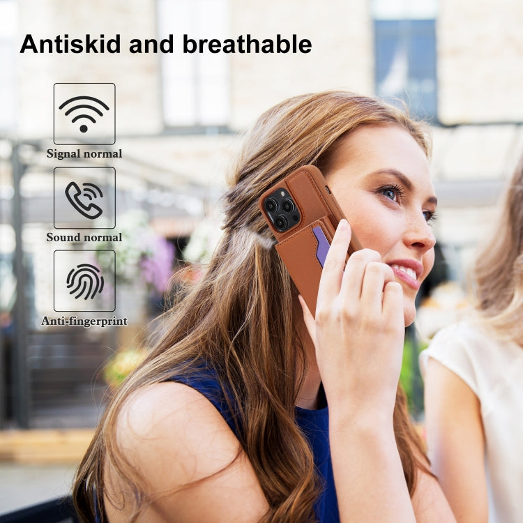 For iPhone 15 RFID Anti-theft Detachable Card Bag Leather Phone Case(Brown)