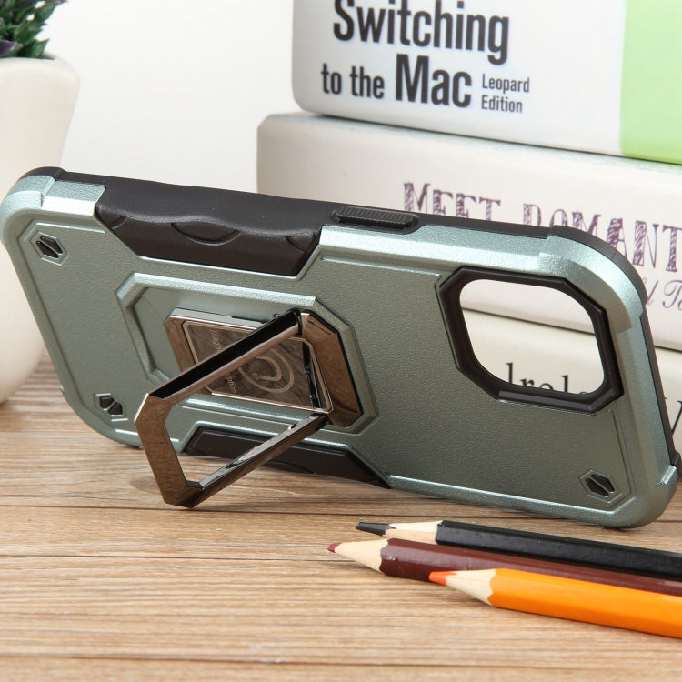 For iPhone 15 Non-slip Shockproof Armor Phone Case with Ring Holder(Green)