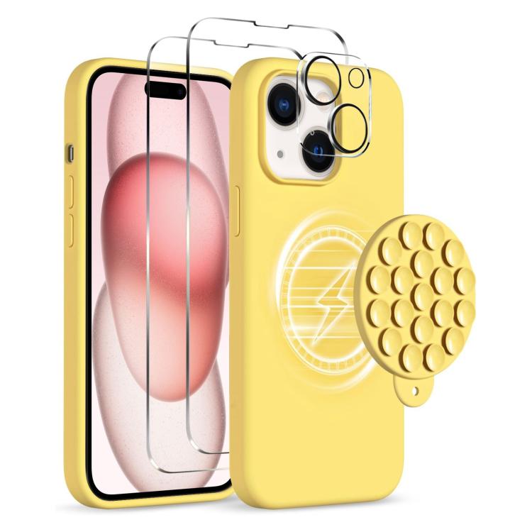 For iPhone 15 Silicone Suction Cup MagSafe Phone Case with Screen Film & Lens Film(Yellow)