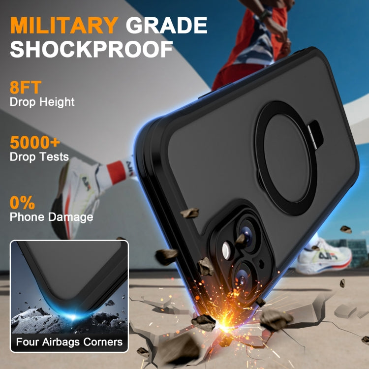 For iPhone 15 Skin Feel MagSafe Holder 360 Full Body Phone Case(Black)