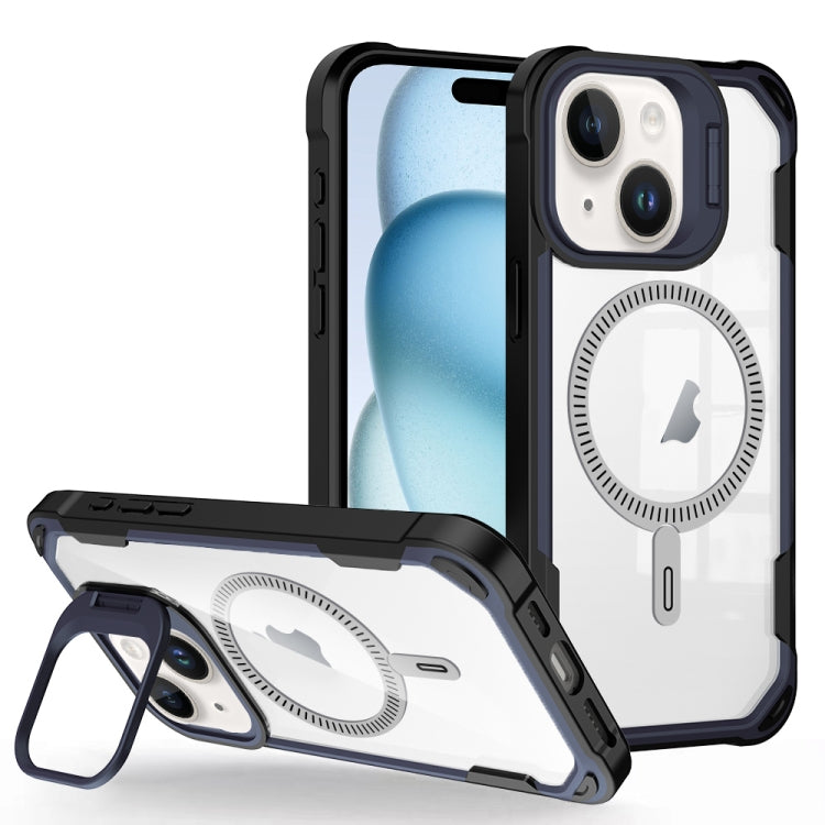 For iPhone 15 Transparent Acrylic MagSafe Lens Holder Phone Case(Navy)