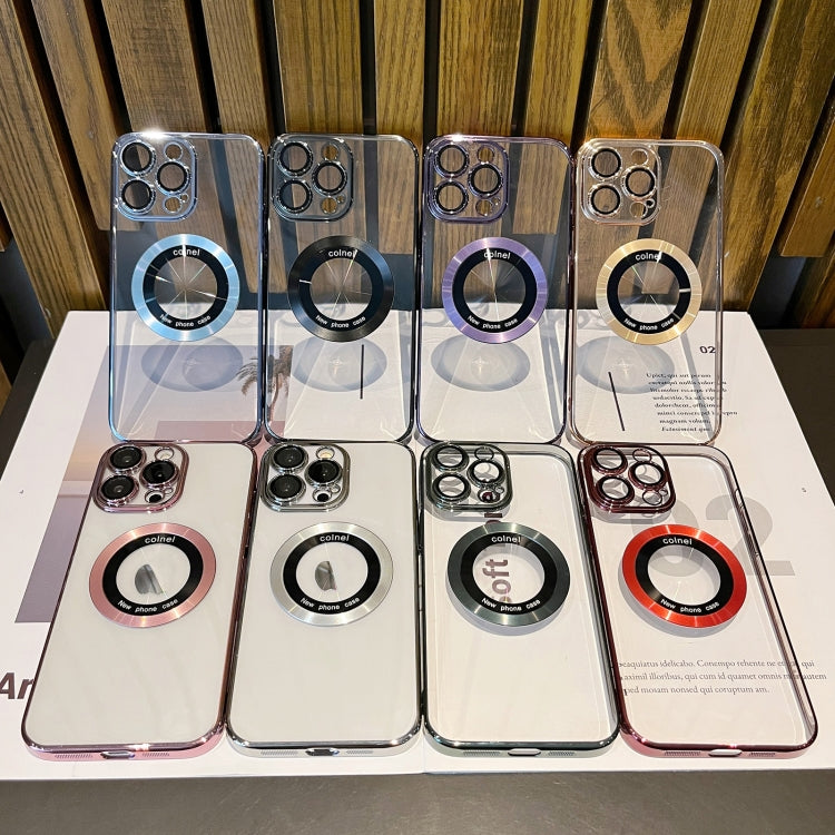 For iPhone 15 Transparent Electroplated PC MagSafe Phone Case(Purple)