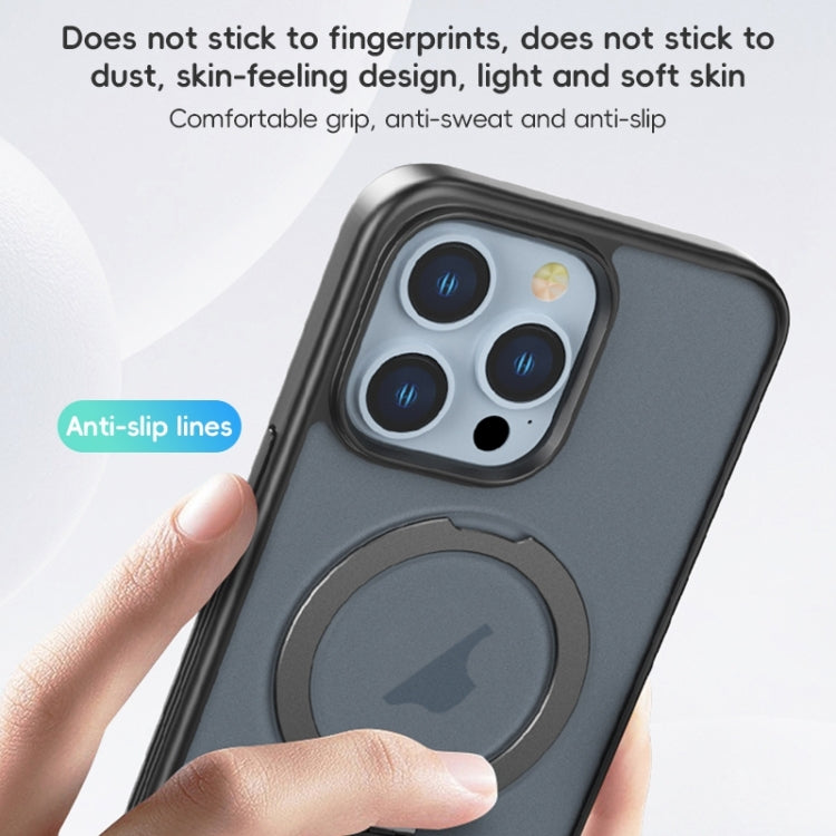 For iPhone 15 ZGA Magsafe Holder PC Hybrid TPU Phone Case(Purple)