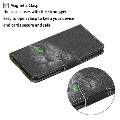 For iPhone 16 3D Colored Drawing Flip Leather Phone Case(Black Cat)