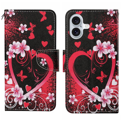 For iPhone 16 3D Colored Drawing Flip Leather Phone Case(Red Heart)