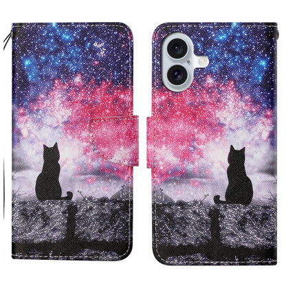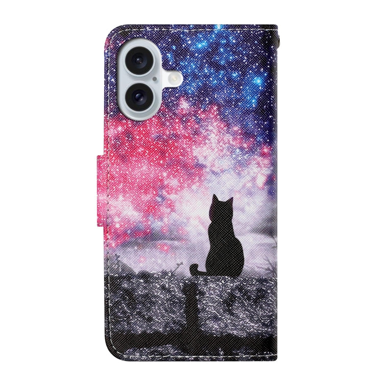 For iPhone 16 3D Colored Drawing Flip Leather Phone Case(Star Cat)