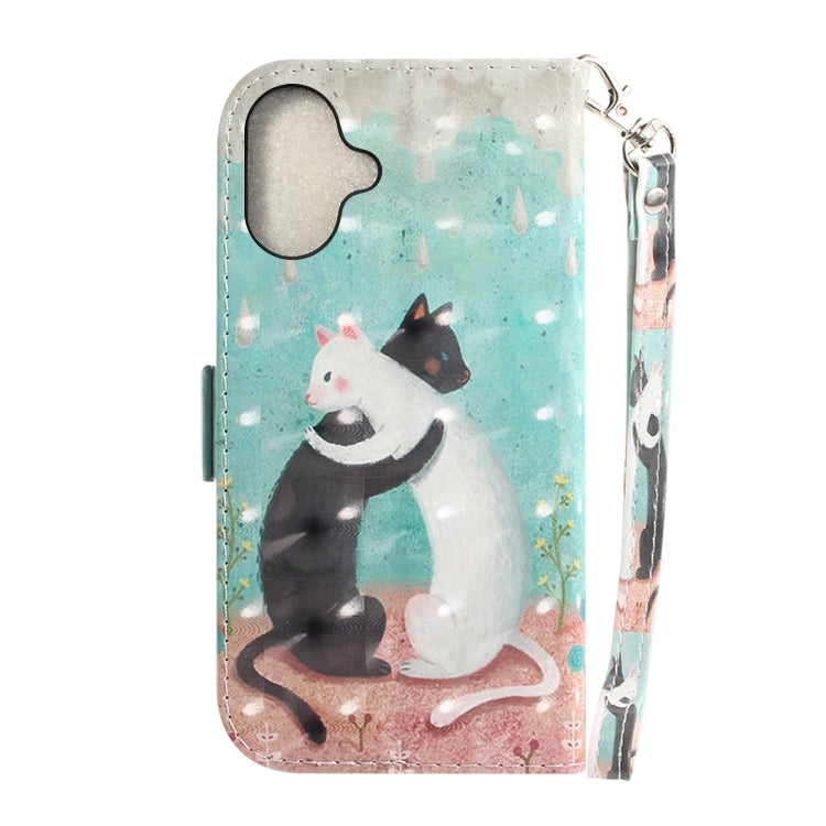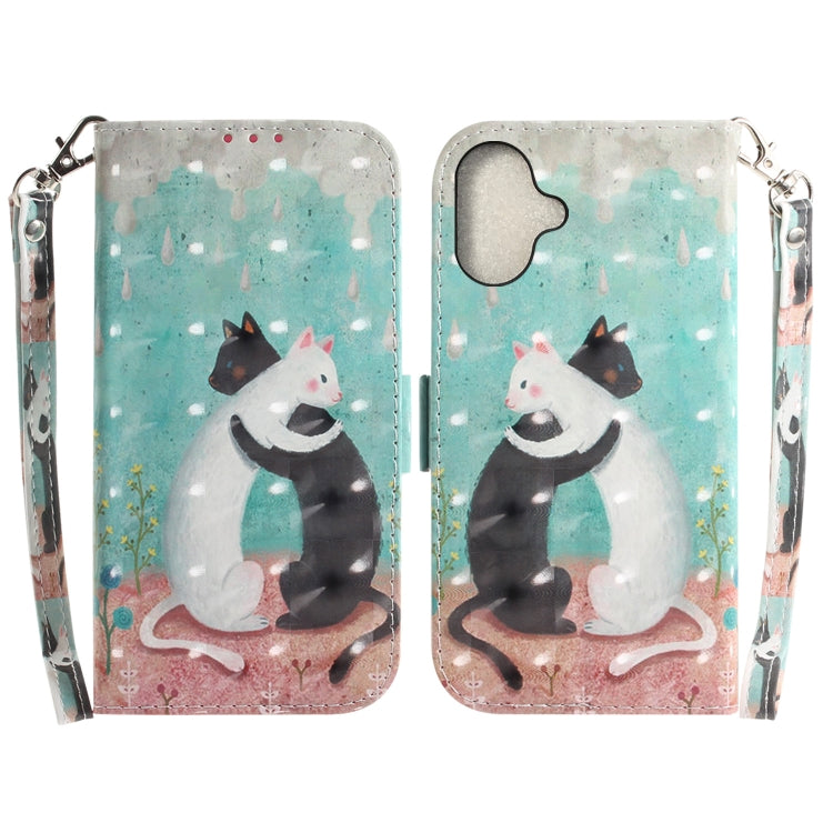 For iPhone 16 3D Colored Horizontal Flip Leather Phone Case(Black White Cat)