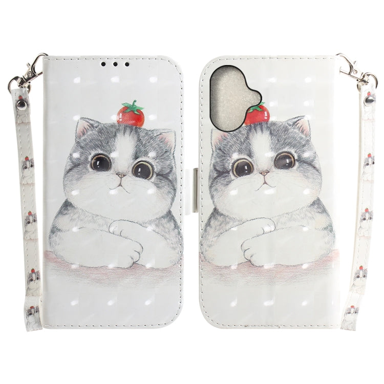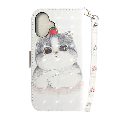 For iPhone 16 3D Colored Horizontal Flip Leather Phone Case(Cute Cat)