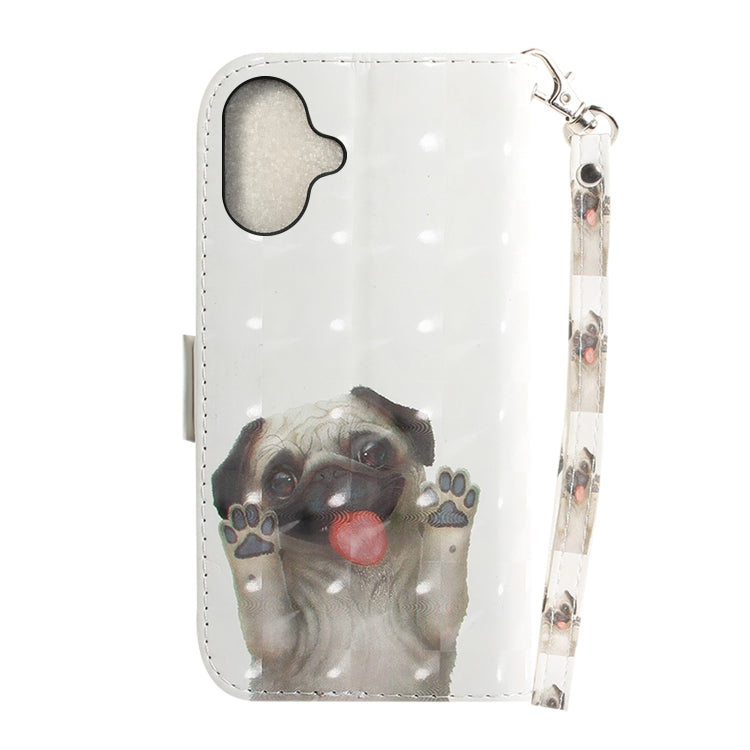 For iPhone 16 3D Colored Horizontal Flip Leather Phone Case(Pug)