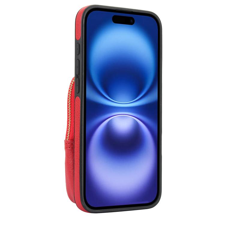 For iPhone 16 AwQuer Crossbody Zipper Wallet Bag Litchi Leather Phone Case(Red)