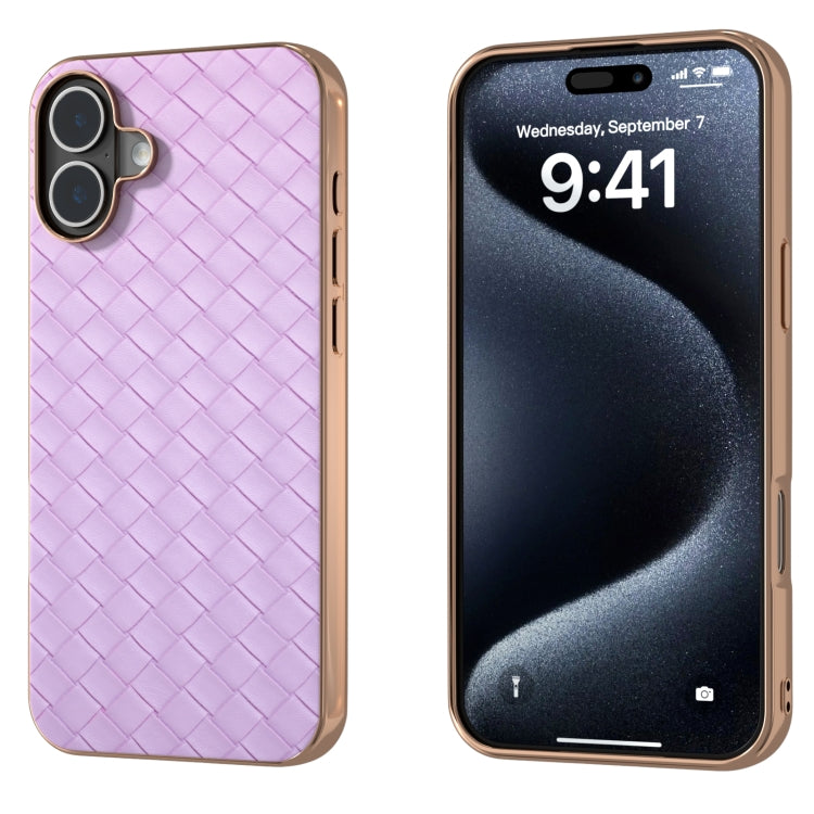 For iPhone 16 Electroplated Frame Woven Texture PU Phone Case(Purple)