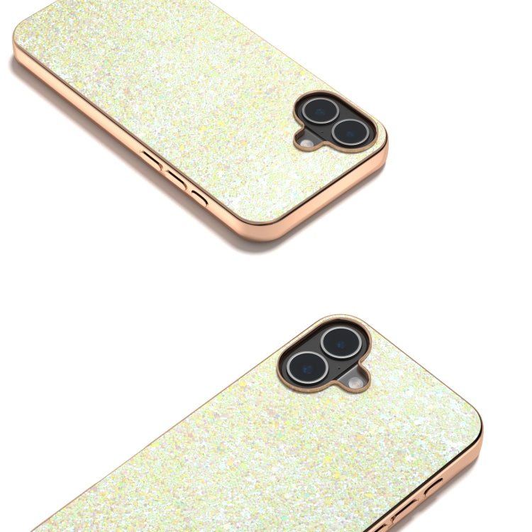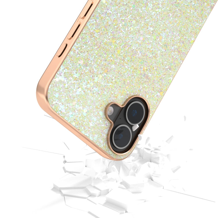 For iPhone 16 Electroplating Frame Colorful Glitter Phone Case(Gold)