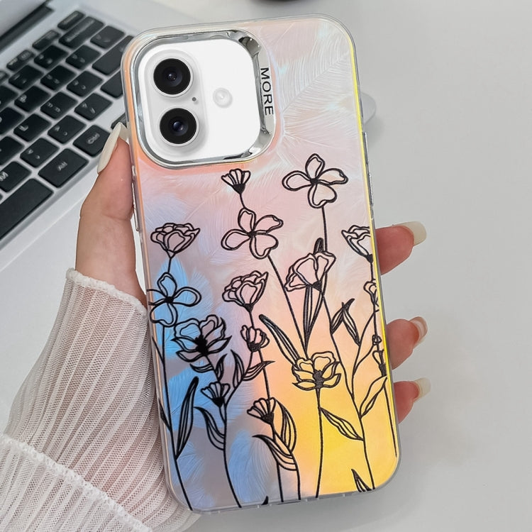 For iPhone 16 Electroplating Laser Flower Texture TPU Phone Case(Drawn Flowers AH3)