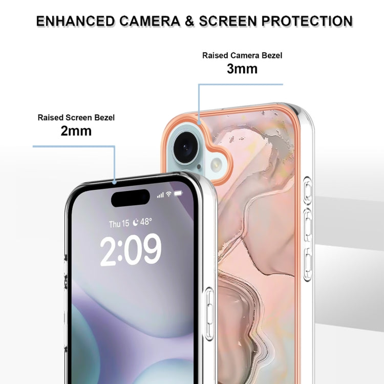 For iPhone 16 Electroplating Marble Dual-side IMD Phone Case(Rose Gold 015)