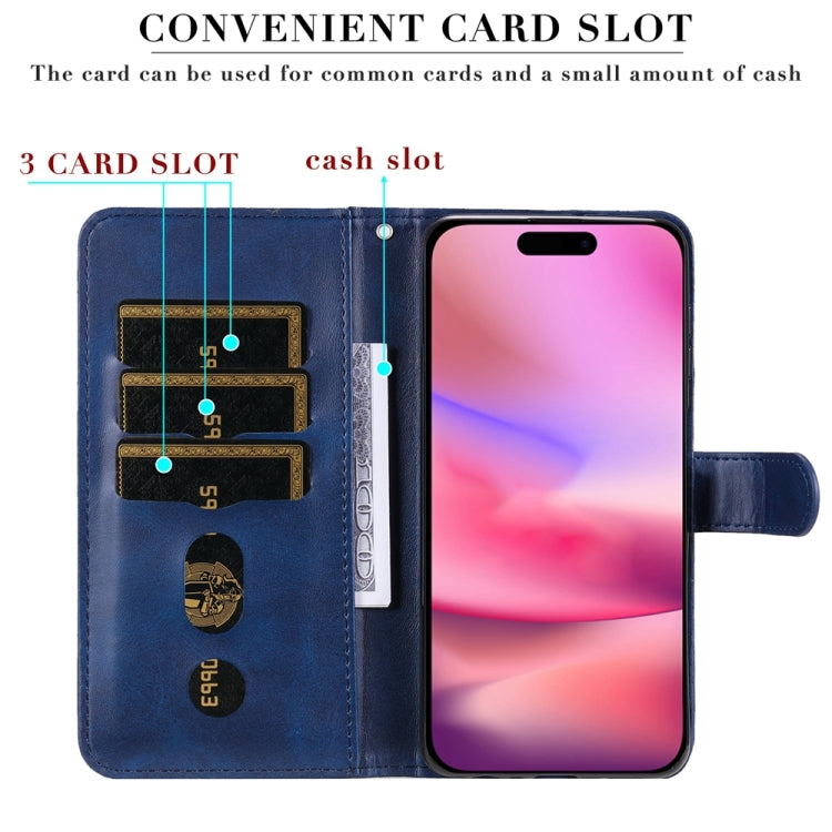 For iPhone 16 Fashion Calf Texture Zipper Leather Phone Case(Blue)