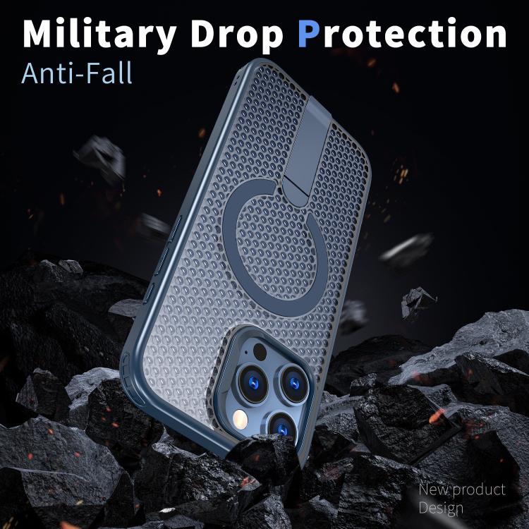 For iPhone 16 kalebol Honeycomb Cooling MagSafe Holder Phone Case(Blue)