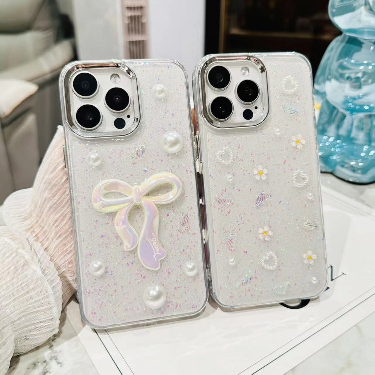 For iPhone 16 Plus 3D Bow Pearl Love Flower TPU Phone Case(Butterfly Love Flowers)