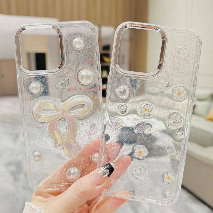 For iPhone 16 Plus 3D Bow Pearl Love Flower TPU Phone Case(Pearl Bow)