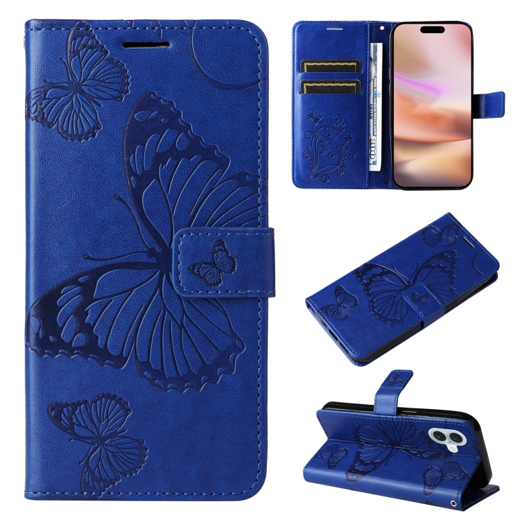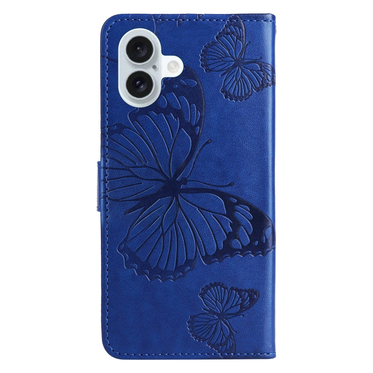 For iPhone 16 Plus 3D Butterfly Embossed Pattern Flip Leather Phone Case(Blue)