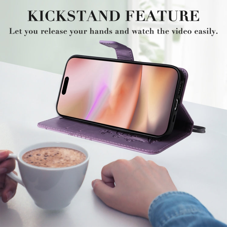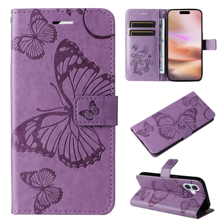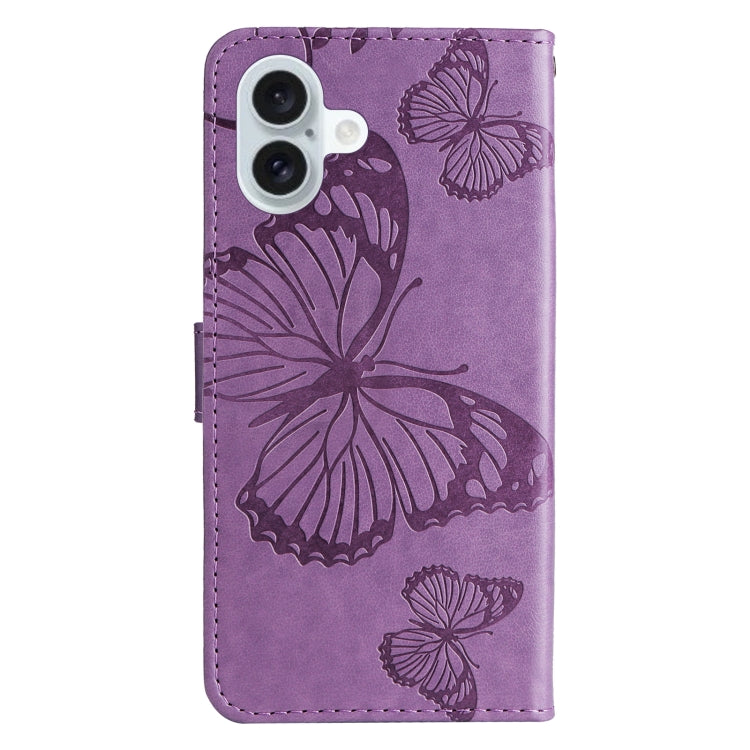 For iPhone 16 Plus 3D Butterfly Embossed Pattern Flip Leather Phone Case(Purple)
