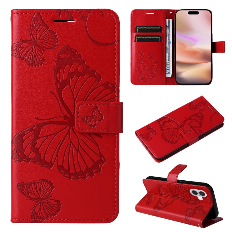 For iPhone 16 Plus 3D Butterfly Embossed Pattern Flip Leather Phone Case(Red)