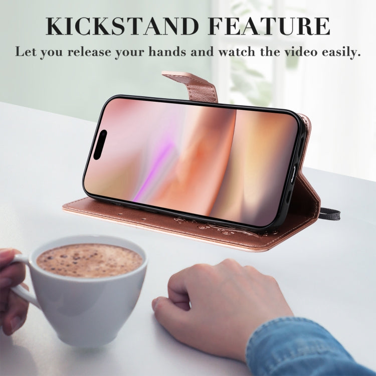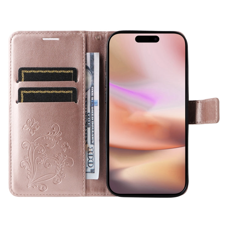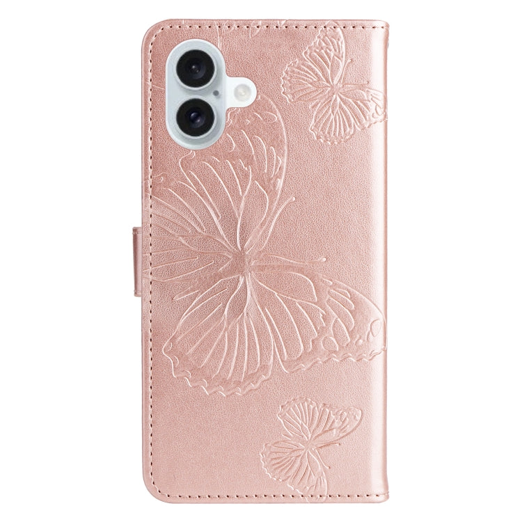 For iPhone 16 Plus 3D Butterfly Embossed Pattern Flip Leather Phone Case(Rose Gold)