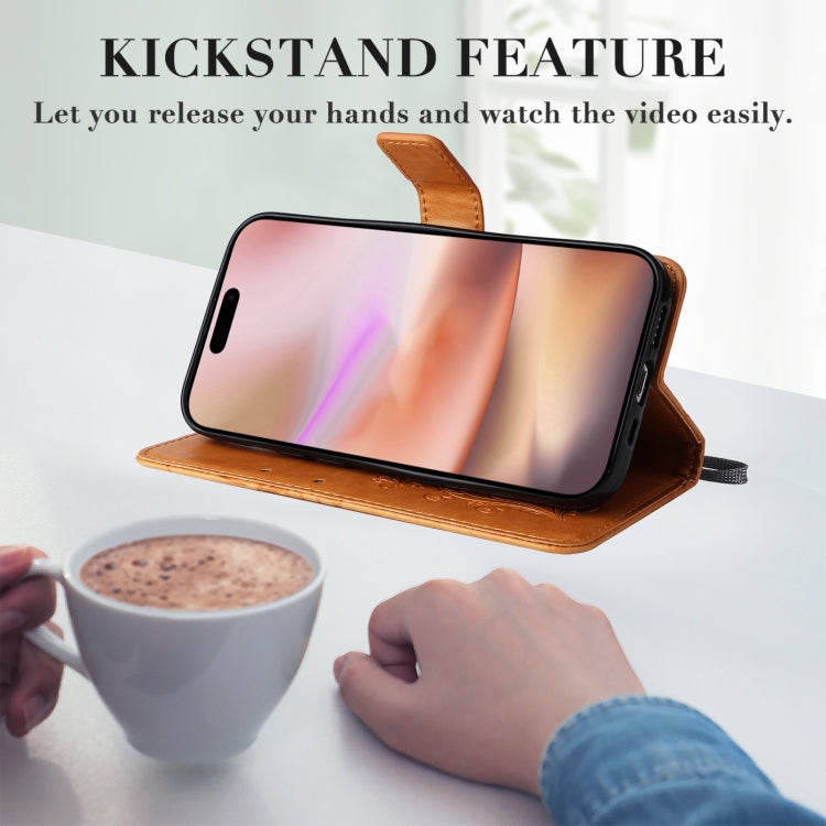 For iPhone 16 Plus 3D Butterfly Embossed Pattern Flip Leather Phone Case(Yellow)
