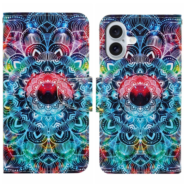For iPhone 16 Plus 3D Colored Drawing Flip Leather Phone Case(Mandala)
