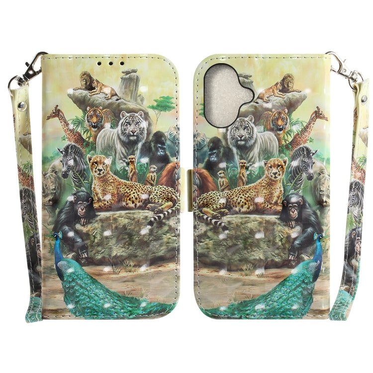 For iPhone 16 Plus 3D Colored Horizontal Flip Leather Phone Case(Zoo)