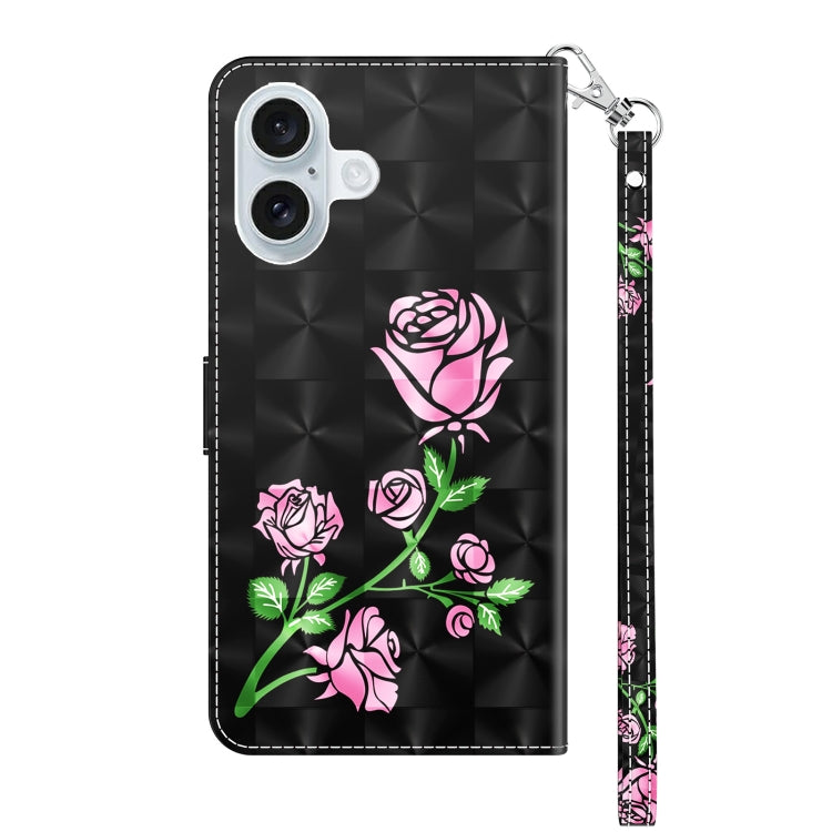 For iPhone 16 Plus 3D Painted Leather Phone Case(Rose)