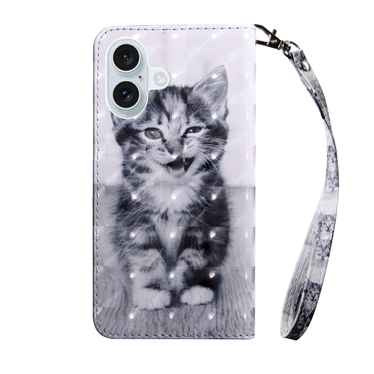 For iPhone 16 Plus 3D Painted Leather Phone Case(Smile Cat)