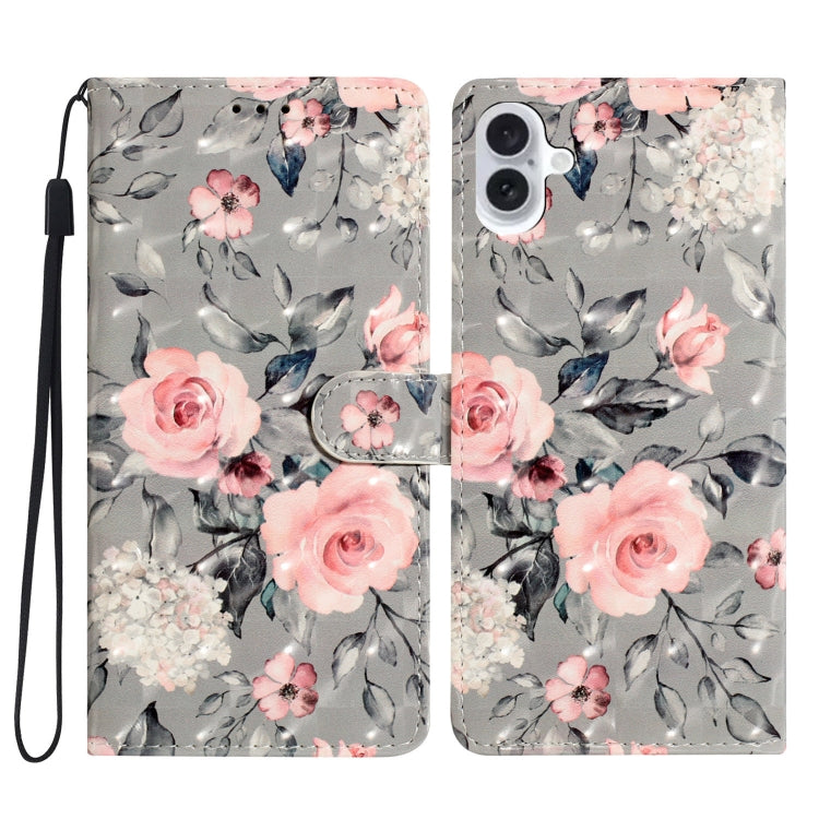 For iPhone 16 Plus 3D Pattern Leather Phone Case(Gray Base Flower)