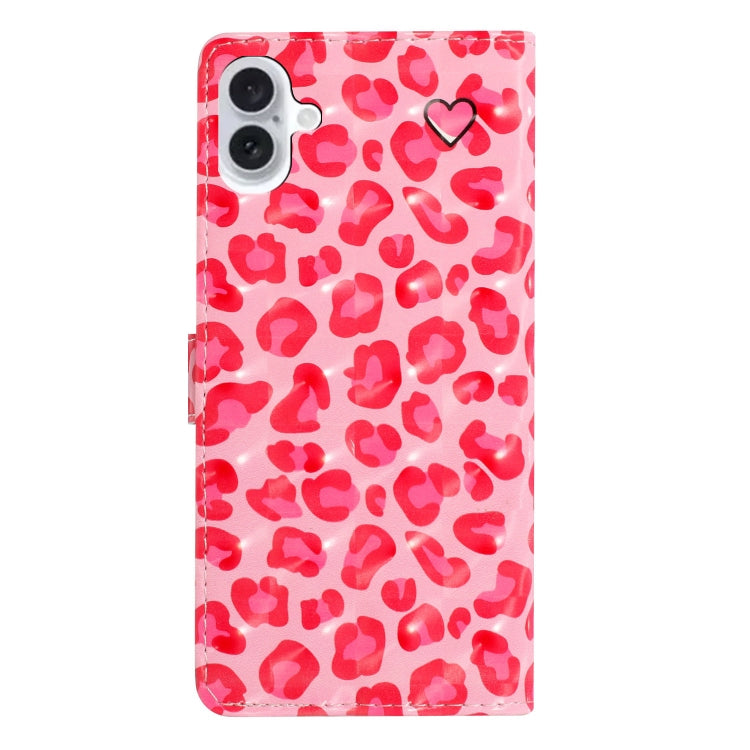 For iPhone 16 Plus 3D Pattern Leather Phone Case(Pink Leopard Print)