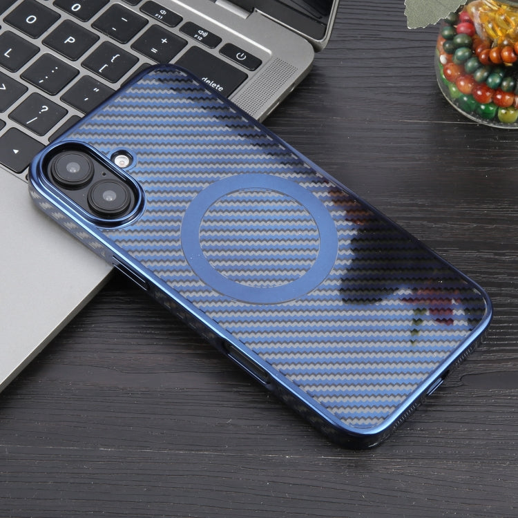 For iPhone 16 Plus 6D Plated Carbon Fiber Clear Magsafe PC Phone Case(Dream Blue)