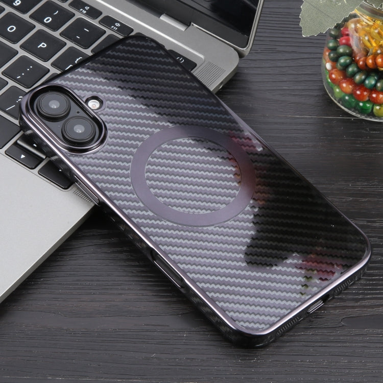 For iPhone 16 Plus 6D Plated Carbon Fiber Clear Magsafe PC Phone Case(Starry Black)