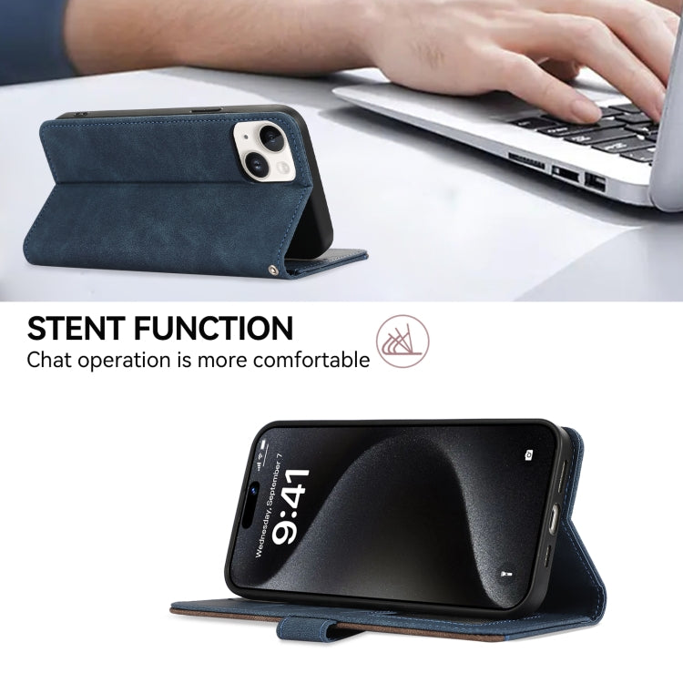 For iPhone 16 Plus ABEEL Color Block Magnetic RFID Leather Phone Case(Blue-Brown)