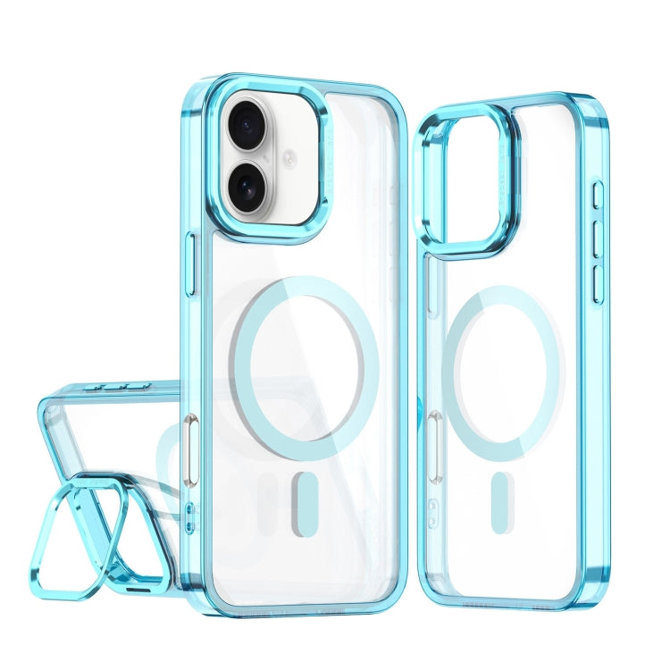 For iPhone 16 Plus Acrylic Camera Holder MagSafe Magnetic Phone Case(Blue)