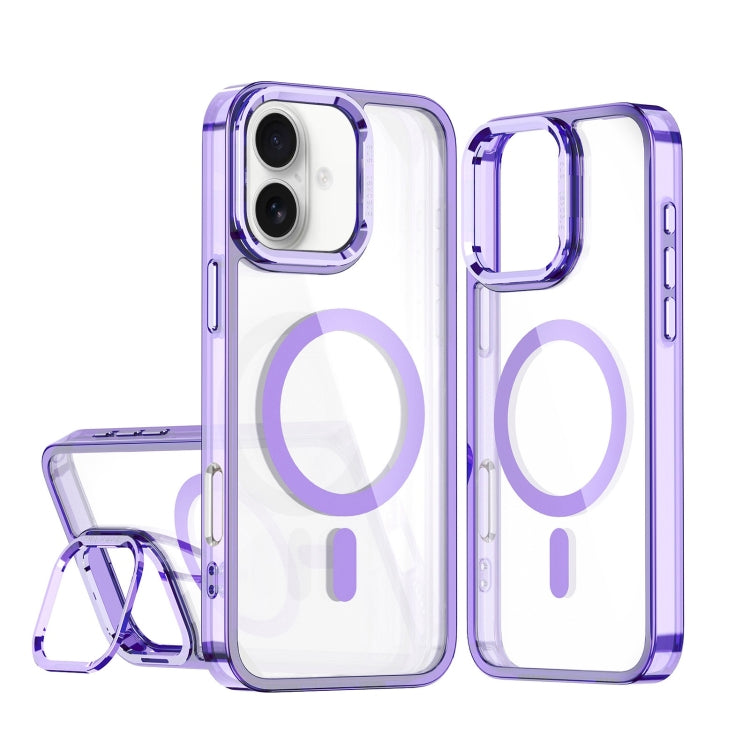 For iPhone 16 Plus Acrylic Camera Holder MagSafe Magnetic Phone Case(Purple)
