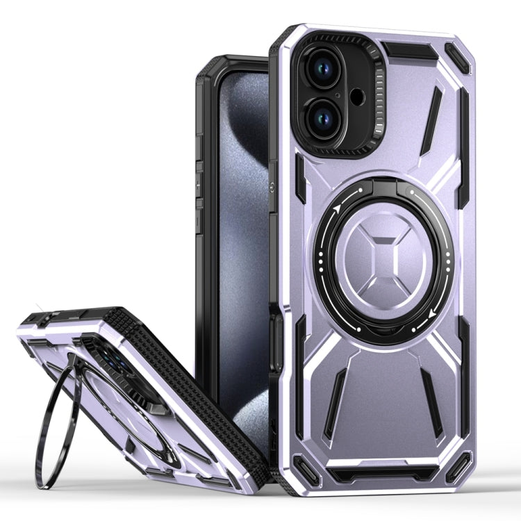 For iPhone 16 Plus Armor II Series MagSafe Magnetic Holder Phone Case(Light Purple)