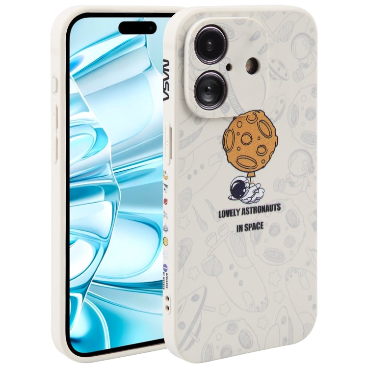 For iPhone 16 Plus Astronaut Pattern Silicone Straight Edge Phone Case(Lovely Astronaut-White)