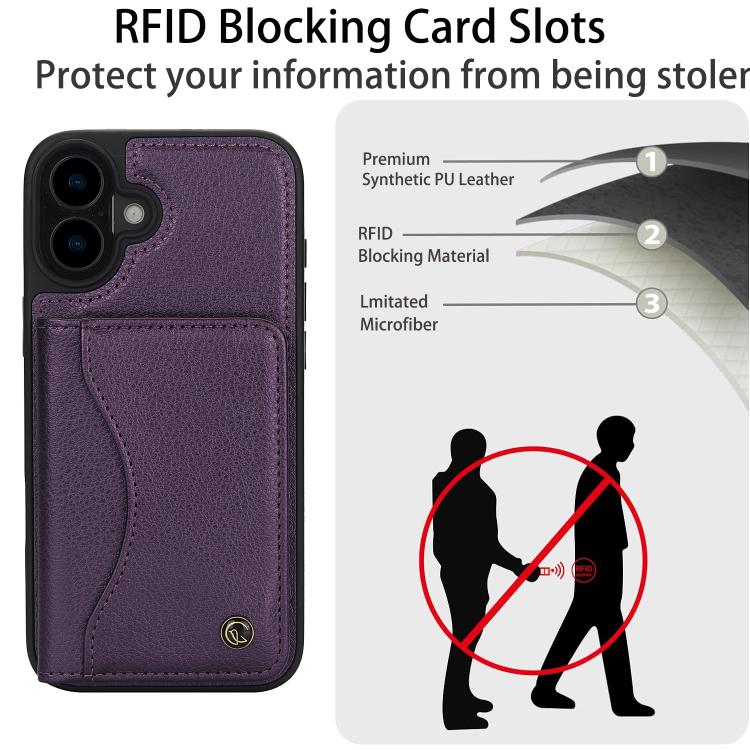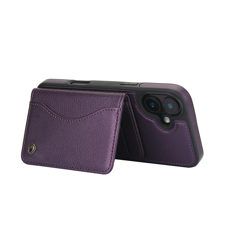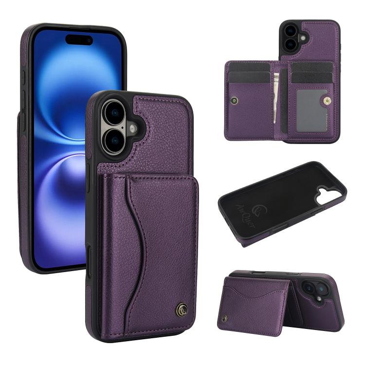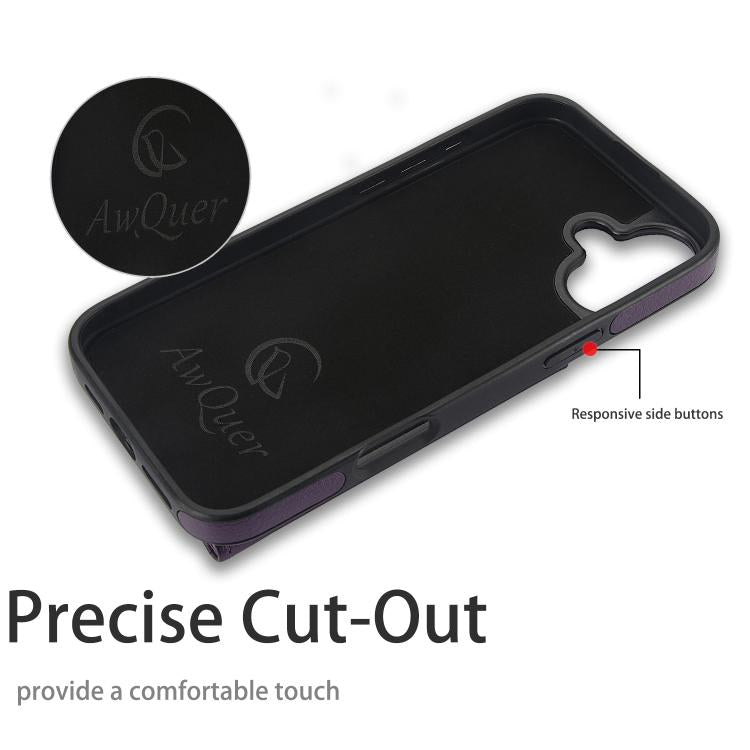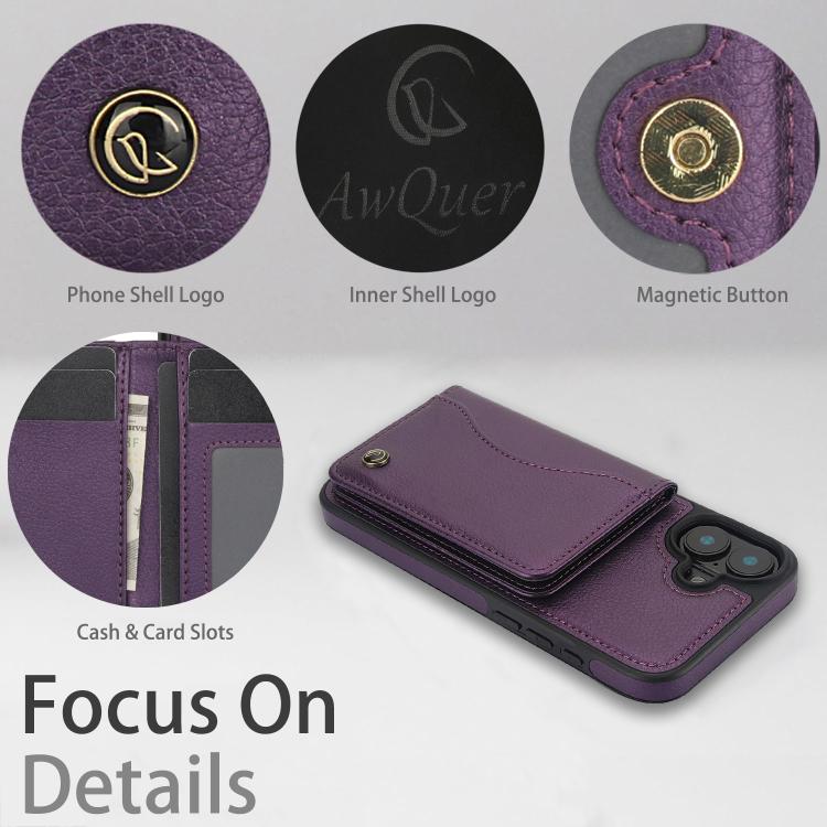 For iPhone 16 Plus AwQuer Horizontal Flip Card Bag Holder Leather Phone Case(Dark Purple)