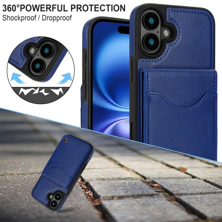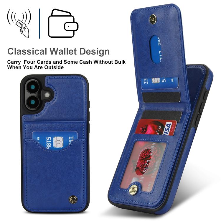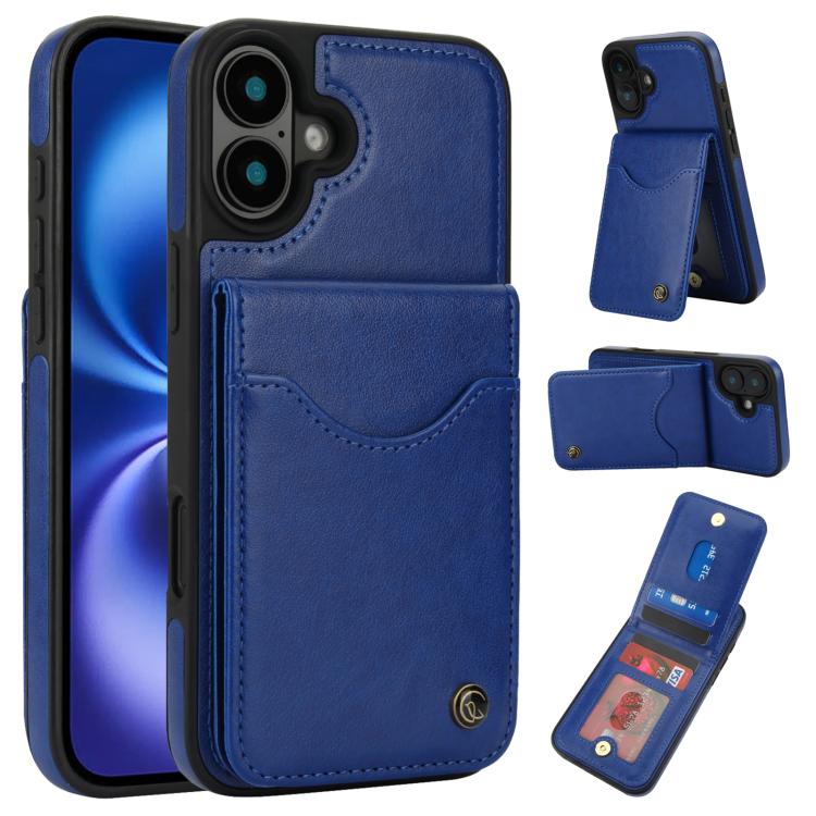 For iPhone 16 Plus AwQuer Vertical Flip Card Bag Holder Leather Phone Case(Blue)