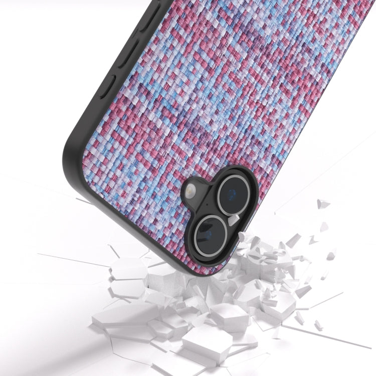 For iPhone 16 Plus Black Frame Color Lattice Texture PU Phone Case(Purple)