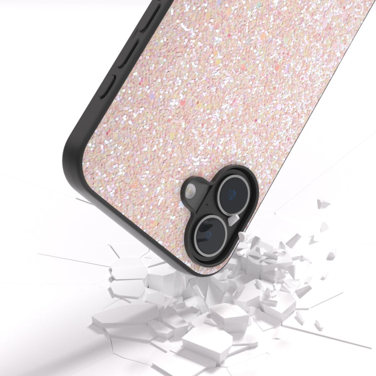 For iPhone 16 Plus Black Frame Colorful Glitter Phone Case(Pink)