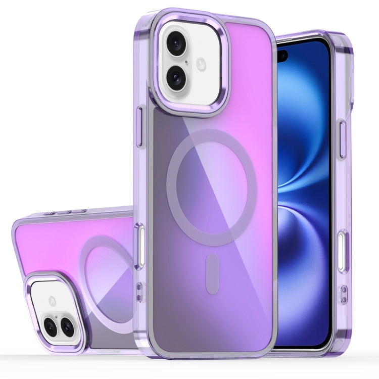 For iPhone 16 Plus Bright Shadow Magsafe Discoloration Phone Case(Purple)