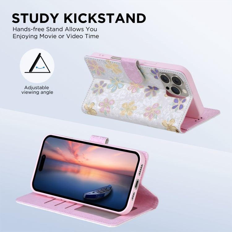 For iPhone 16 Plus Bronzing Painting RFID Leather Case(Bloosoming Flower)