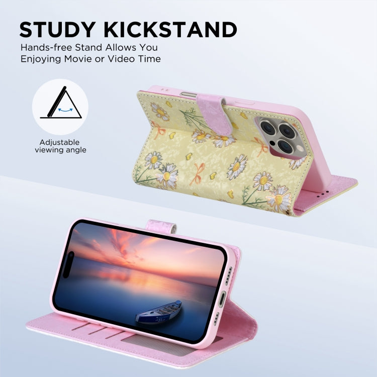 For iPhone 16 Plus Bronzing Painting RFID Leather Case(Yellow Daisy)