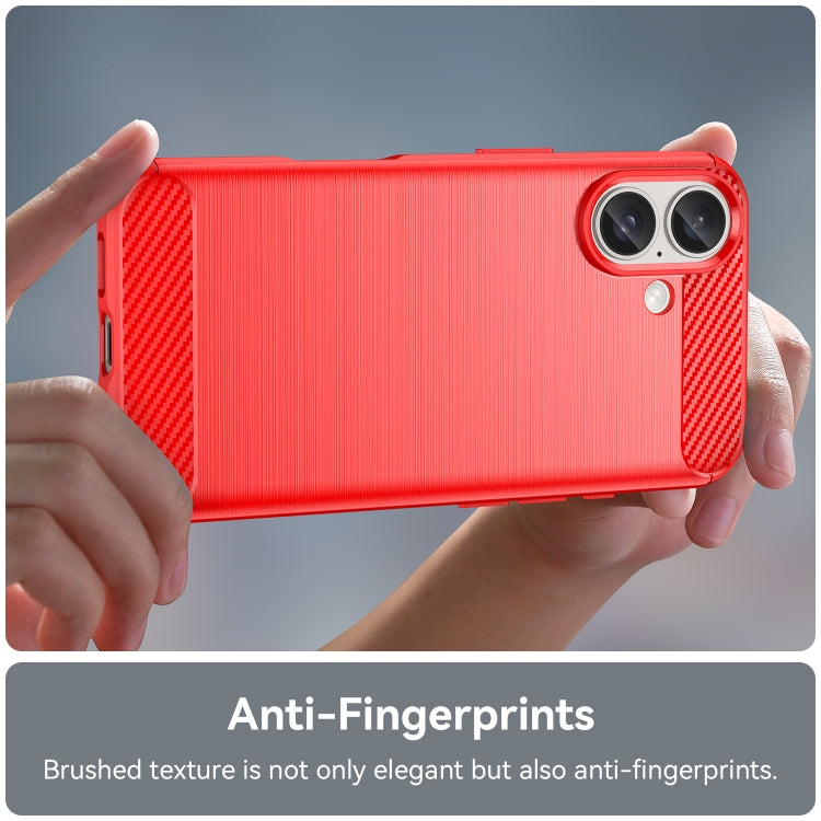 For iPhone 16 Plus Brushed Texture Carbon Fiber TPU Phone Case(Red)
