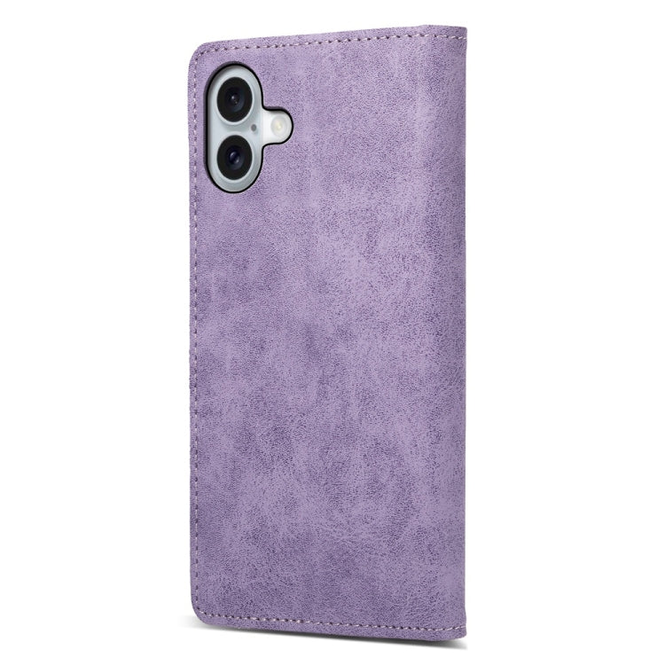 For iPhone 16 Plus Business Solid Color Magnetic RFID Leather Phone Case(Purple)